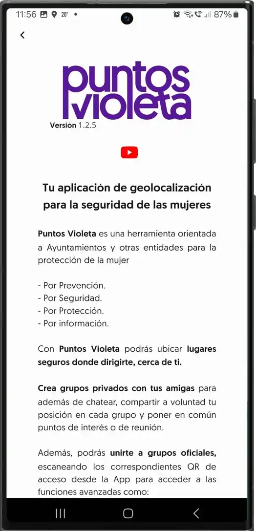 Descarga gratis la App Puntos Violeta, que ofrece protección, prevención y seguridad, además permite localizar de manera anónima ubicaciones seguras y recursos compartidos por cada Ayuntamiento. Con una capa extra de seguridad en caso de desaparición.